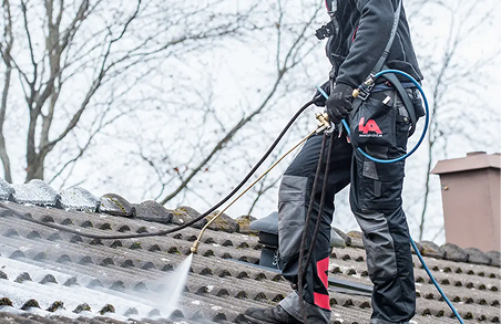 Ei, emme käytä painepesuria. Sen sijaan työskentelemme hellävaraisella menetelmällä, joka suojaa kattoa ja pidentää sen käyttöikää.